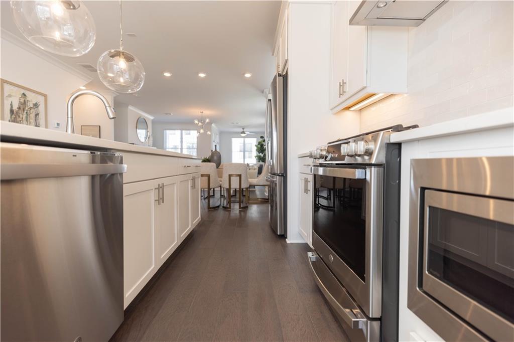 Spring into a New Home! QUICK MOVE IN! $10,000 towards closing costs when financing with one of the Seller's preferred lenders on contracts written in February! This home is located in a highly sought-after neighborhood - just minutes from Suwanee Town Center, Downtown Duluth, Buford & more! The community offers a range of amenities, such as a gated entrance, clubhouse, pool, playground, five charming pocket parks, and direct access to Peachtree Ridge Park! The 3 story Glendale plan offers private bedroom on the terrace level with a full bath that can also be used as office or media room. The main level open concept design seamlessly connects the kitchen to the dining area and living room, creating a spacious and inviting living space. The beautifully designed kitchen features upgraded finishes including sleek quartz countertops, stainless steel appliances, soft close cabinets, & under cabinet lighting. The living room includes a cozy fireplace and large windows flood the area with natural light, creating a warm and welcoming atmosphere. Step outside from the living room onto a generously sized deck, perfect for entertaining, relaxing, and enjoying fresh air. On the upper level you will find your owner's suite featuring a spa-like bathroom complete with a large shower, linen closet, & dual vanities. A secondary bedroom with its private bath is situated further down the hallway, and you'll appreciate the practicality of having the laundry area conveniently located on the upper floor. Photos depict a previously built Glendale plan and not the actual home. [The Glendale]