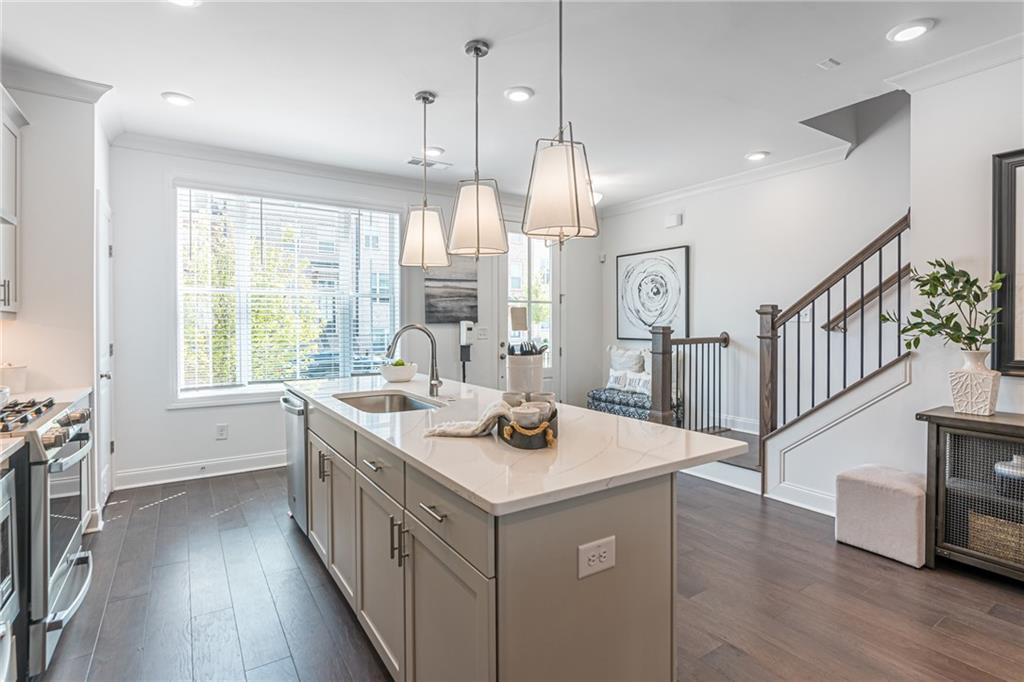 Don't Miss One of the Last Opportunities to Purchase a Garwood Home Design at Ellington! This New Construction, crafted by The Providence Group Homes, showcases a charming exterior with brick front and a 2-car garage. Step into the mid-level foyer to discover the impeccably designed kitchen boasting an oversized island adorned with quartz countertops, stainless appliances, and tile backsplash! The open-concept layout seamlessly connects the kitchen to the family room and dining area. Relax in the family room, complete with a cozy gas fireplace, and step out onto the spacious rear deck for outdoor entertainment. Upstairs, indulge in the owner's suite featuring a luxurious bathroom with a dual vanity and an extended walk-in shower with a drying area. A secondary bedroom with a private bath awaits down the hallway, with the laundry area conveniently located on the upper floor for easy access. The terrace level offers a bedroom and full bath, alongside the 2-car garage. Explore our fully furnished Garwood Information/Model Home today! Community amenities include a gated entrance, clubhouse, pool, playground, five pocket parks, and paved access to County Park Trails and a pathway leading to Peachtree Ridge Park! This home is completed and ready for you to MOVE-IN! At TPG, we value our customer, team member, and vendor team safety. Our communities are active construction zones and may not be safe to visit at certain stages of construction. Due to this, we ask all agents visiting the community with their clients come to the office prior to visiting any listed homes. Please note, during your visit, you will be escorted by a TPG employee and may be required to wear flat, closed toe shoes and a hardhat. Please note, photos depict the previously built Garwood plan and not the actual home. [The Garwood]