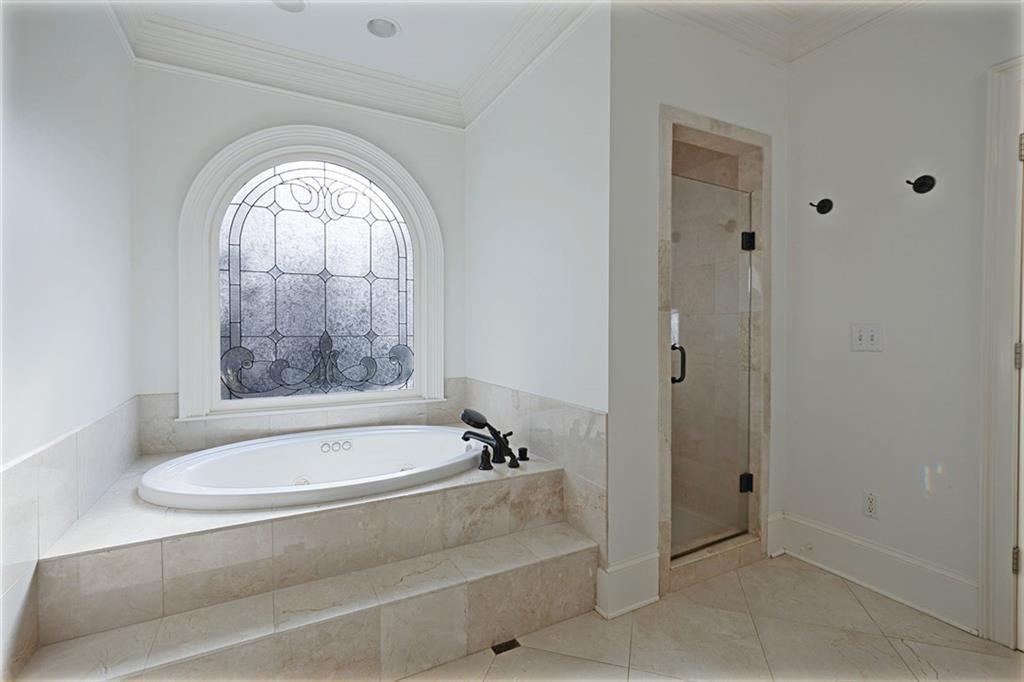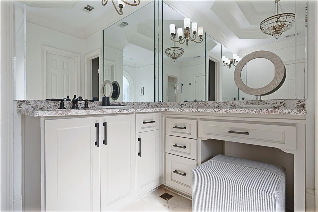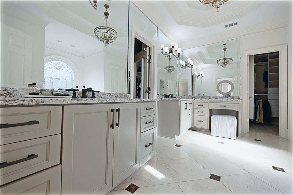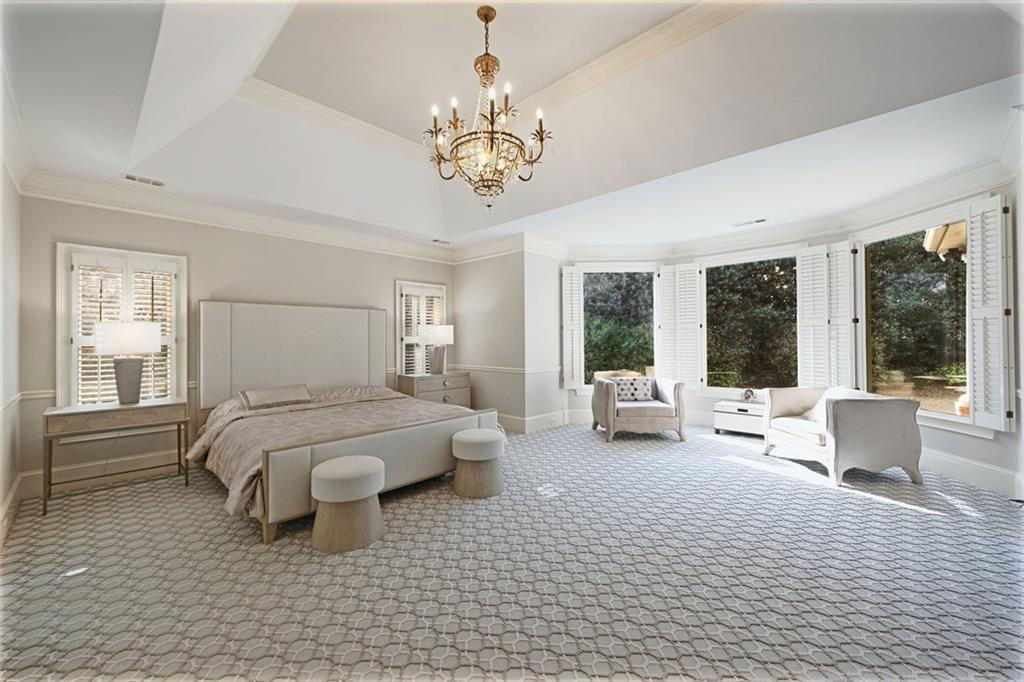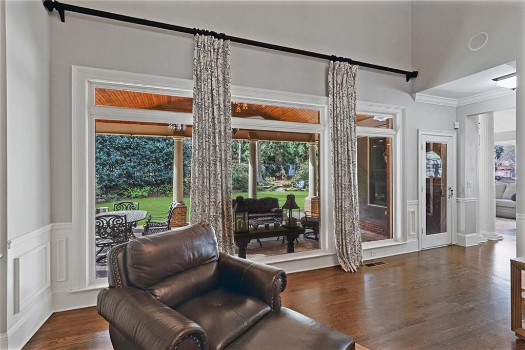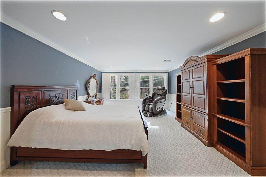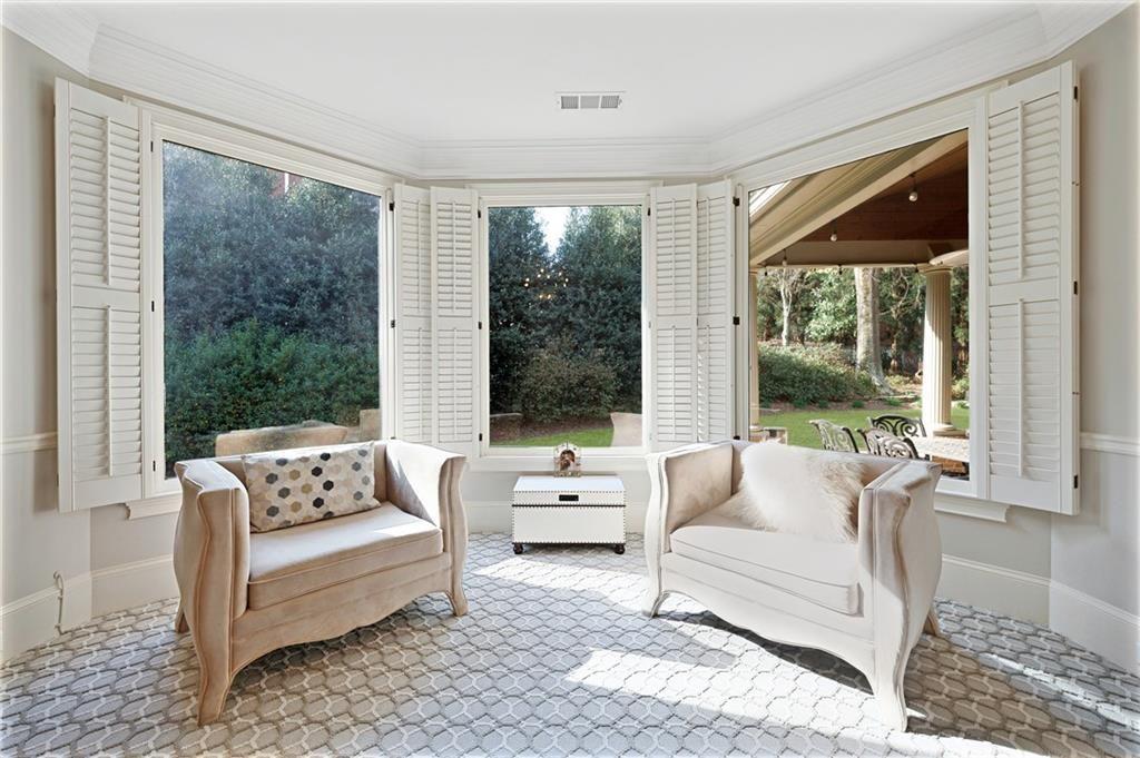 The main-level primary suite is a true sanctuary, complete with a sitting room, custom bookcases, and oversized windows overlooking the tranquil backyard--offering both convenience and a peaceful escape.