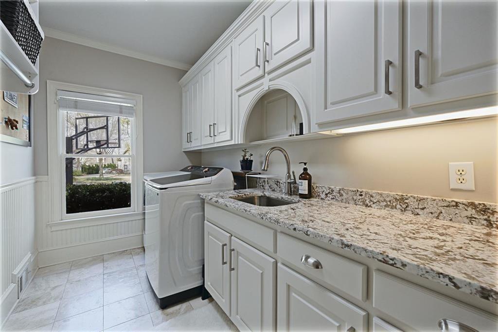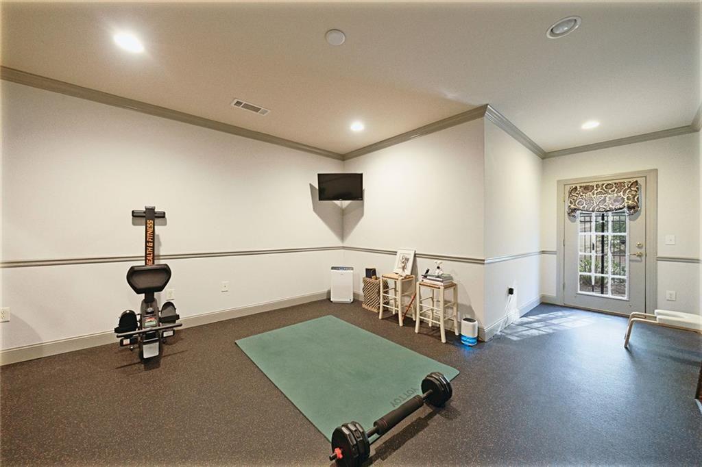 The terrace level is thoughtfully designed for entertainment and versatility, featuring a pub-style bar, billiards area, ping pong space, movie/audio room, full bedroom, full bath, and additional flexible areas to suit a variety of lifestyle needs--ideal for hosting guests or creating personalized living spaces.