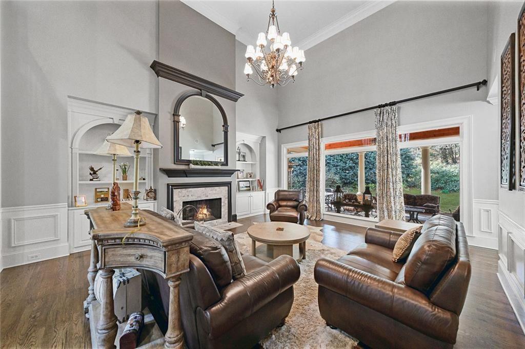 From the moment you arrive, the home's elevated setting and serene surroundings create a true sense of retreat. Inside, timeless design meets comfortable living with light-filled spaces and refined architectural details throughout. Guests are welcomed by a striking two-story foyer, setting the tone for the home's sophistication. A private office or library offers the perfect space for work or relaxation, while the elegant dining room comfortably seats 12 and is complemented by a convenient butler's pantry.