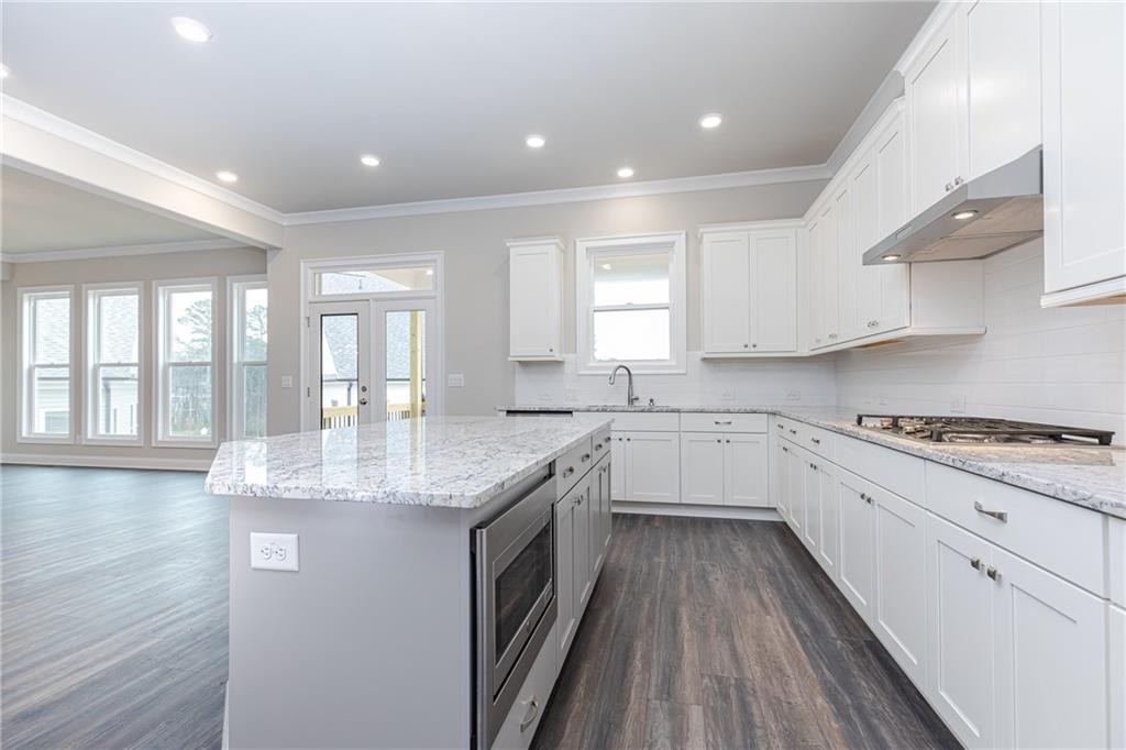 This beautiful open concept floor plan features 10' ceilings on the main floor and a huge gourmet kitchen. This gorgeous kitchen has white cabinets at perimeter and an extended Navy island that overlooks the family room with cozy fireplace. Additionally, the kitchen has Stainless Steel Appliances and quartz countertops. Just off the breakfast area is a sunroom that leads to a spacious patio. There is also a guest bedroom and bath on the main floor. Upstairs you will find the spacious owners suite with extra large his and hers walk-in closets and a spa like owners bath with 2 individual vanities, tub and separate shower. 3 other bedrooms and 2 baths finish out the upper floor. Community Amenities will include a gated entrance, clubhouse, pool, playground, five pocket parks and access to County park trails and a path to Peachtree Ridge Park. Ellington is located within the desirable Peachtree Ridge School District and just a short 3 mile drive from the award winning Suwanee Towne Center! Come in now and you can pick out your interior selections and make this one your own!!! Up to Elevate your Life in 2023! $20k closing cost incentive with use of one of the Preferred Lenders - Ameris Bank, Capital City Home Loans, New American Funding, Renasant Bank, and Prime Lending. Pictures are same floorplan but NOT actual home. Office Hours are Monday - Saturday from 10am to dusk, Sunday from 1pm to dusk. [The Montgomery]
